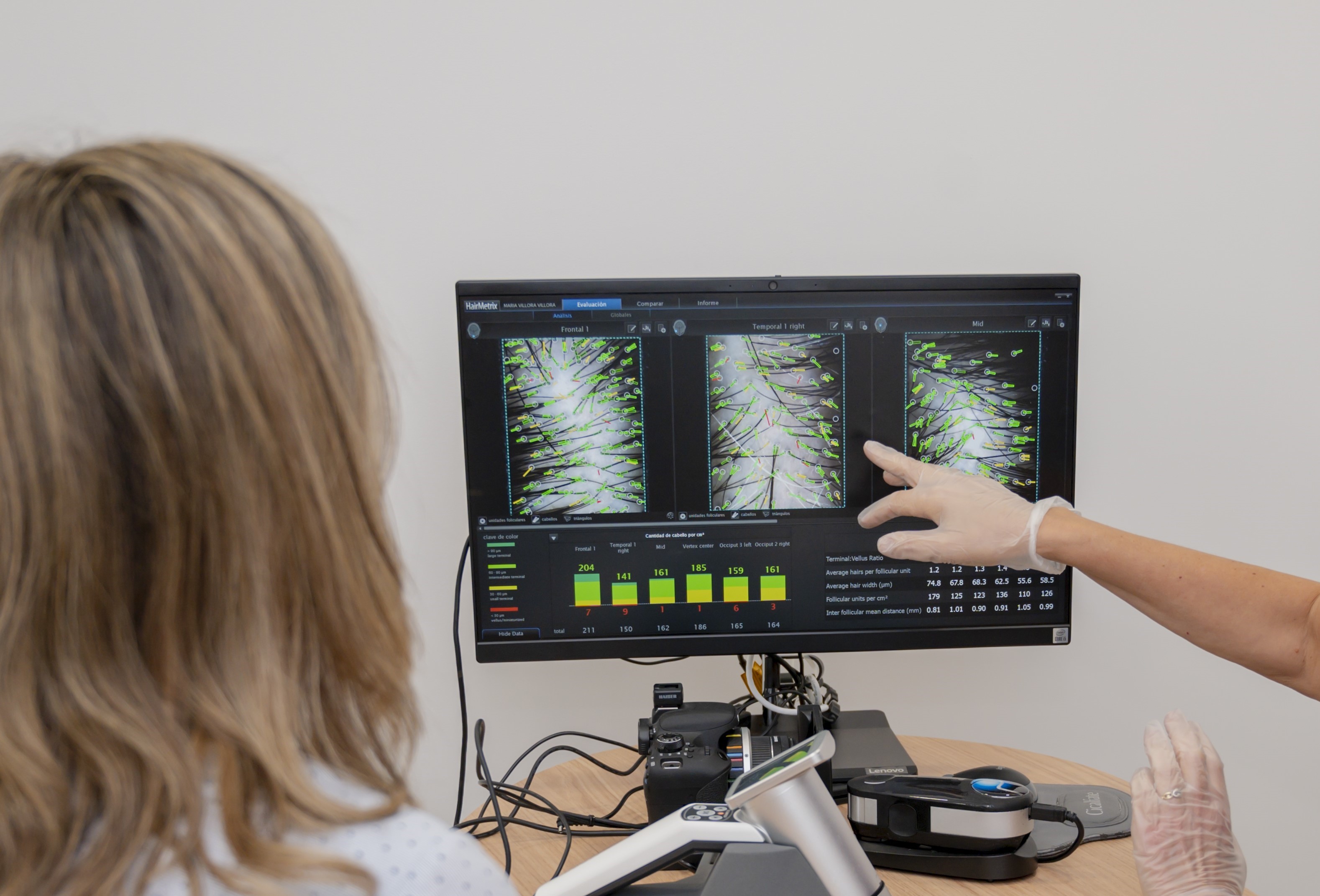 • Tricoscopio Digital: Realizamos un análisis detallado del cuero cabelludo y los folículos. Esto nos permite obtener diagnósticos rápidos y realizar un seguimiento preciso.